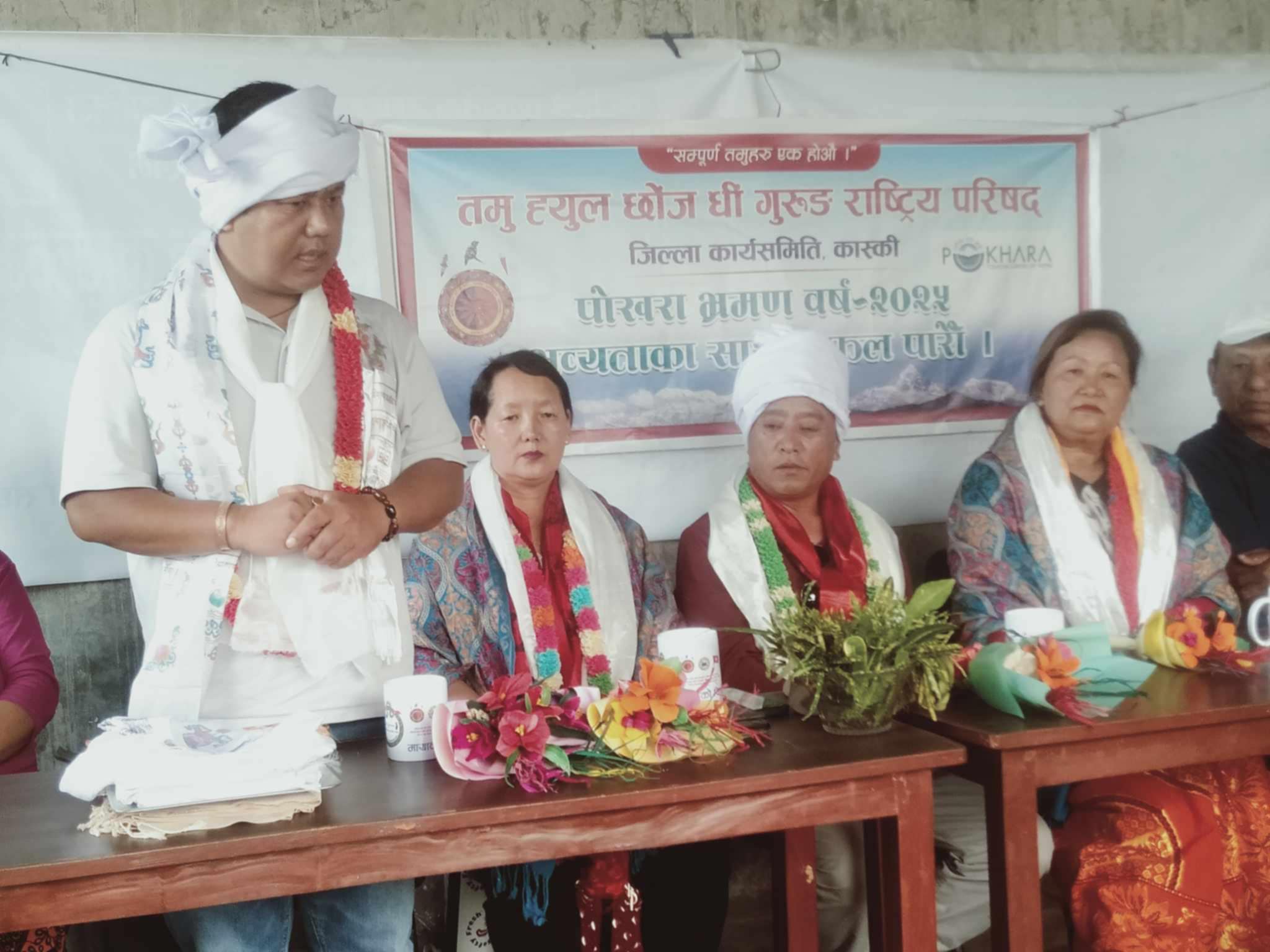 परिषदकी कास्की जिल्ला अध्यक्ष सीता गुरुङको अध्यक्षतामा आयोजित कार्यक्रममा प्रमुख अतिथि नवनिर्वाचित उपाध्यक्ष मनोज गुरुङले गुरुङको मौलिक थातथलोको नाम खसकरण हुँदै गएकोले गम्भीर भएर जोगाउनका लागि सबै मिलेर लाग्नुपर्ने बताए ।