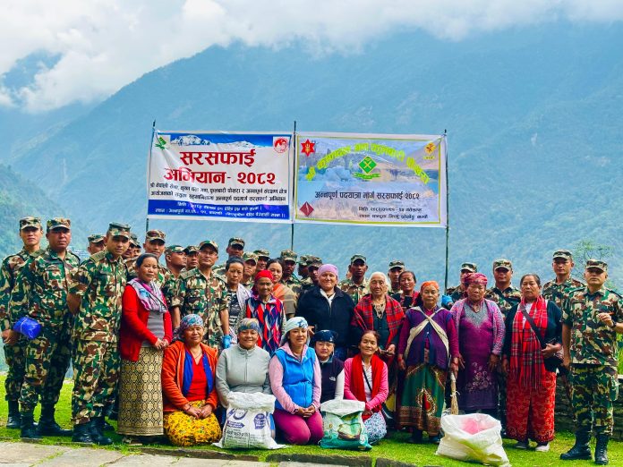 पर्यटन प्रवर्द्धन, पर्यावरण संरक्षण तथा पदयात्रुहरुको सुरक्षालाई मध्यनजर गर्दै नेपाली सेनाको श्री कृष्णदल गणले अन्नपूर्ण पदमार्ग क्षेत्रको सरसफाई अभियान सफलतापूर्वक सम्पन्न गरेको छ। सेनाको पश्चिम पृतना अन्तर्गत श्री नं. ३ वाहिनी अड्डाको निर्देशनमा सञ्चालन गरिएको अभियान बैशाख २१ गतेदेखि २५ गतेसम्म पाँच दिनसम्म सञ्चालन गरिएको हो।